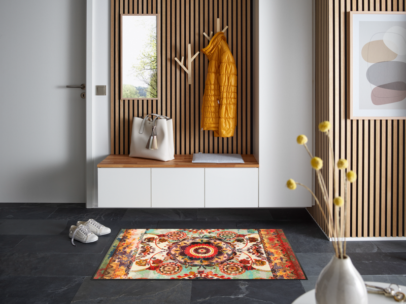 שטיח כניסה יוקרתי בעיצוב אלגנטי ומרשים, שמוסיף לחלל הבית תחושת יוקרה ואופי מפואר כבר מהצעד הראשון.