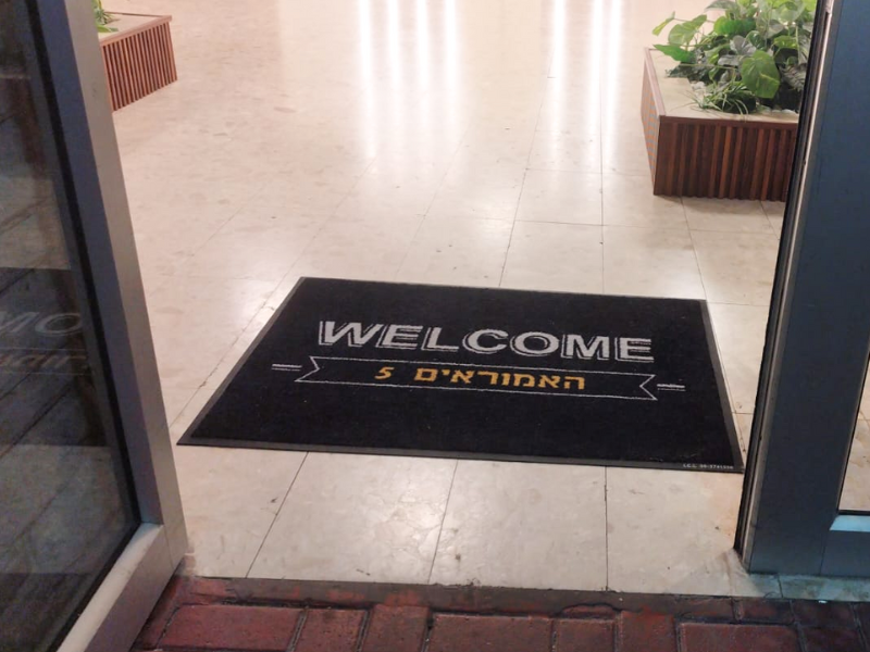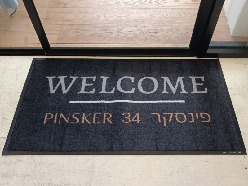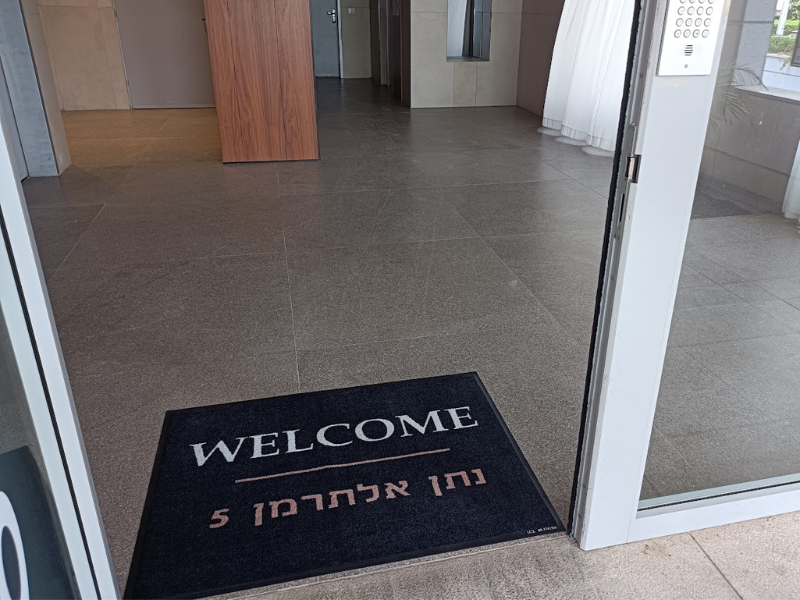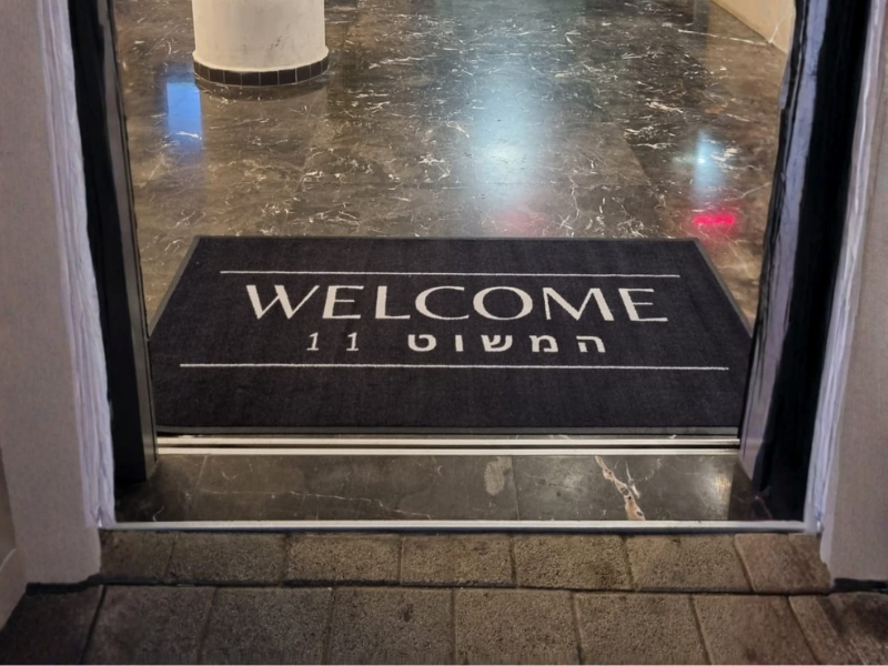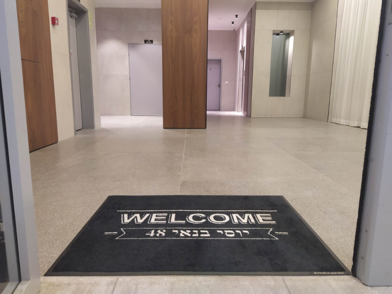 מזמינים שטיח מותאם אישית לפי גודל, צבע וסגנון – עם אפשרות להוספת כתובת הבניין או כל טקסט שתרצו.
