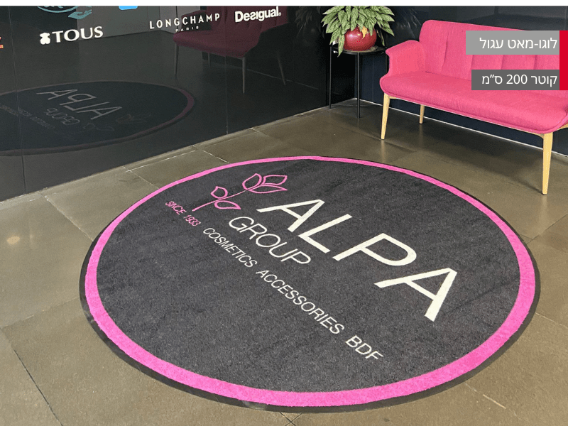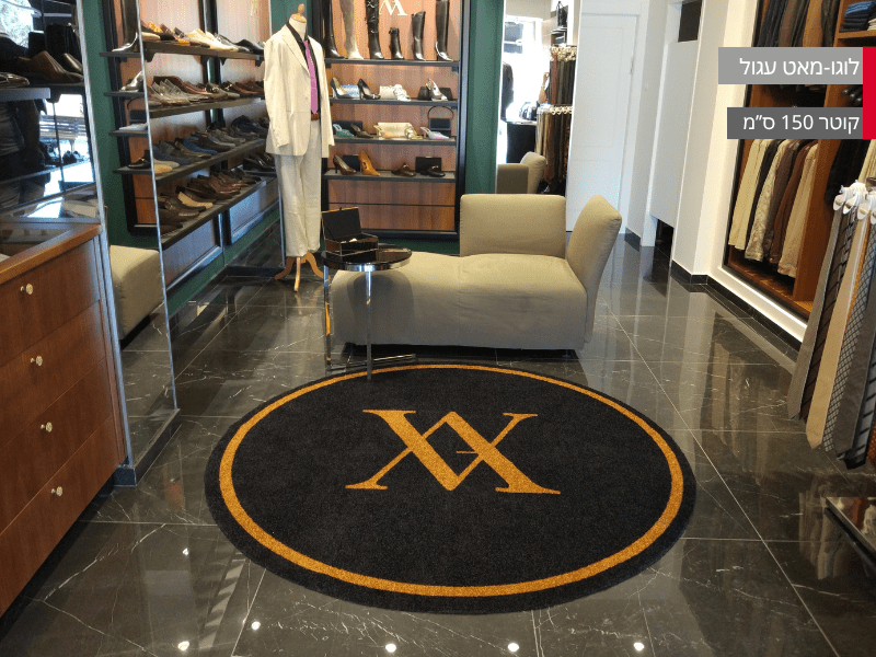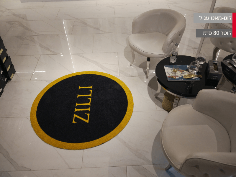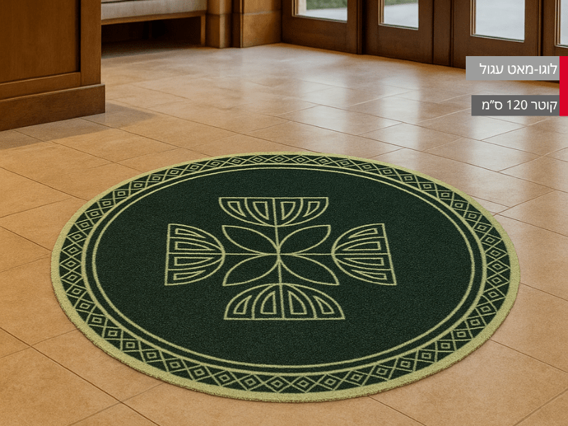 שטיח לוגו עגול במגוון רחב של גדלים לבחירתכם. אידיאלי לכניסות מרשימות של עסקים, אולמות, משרדים, מלונות ותערוכות.