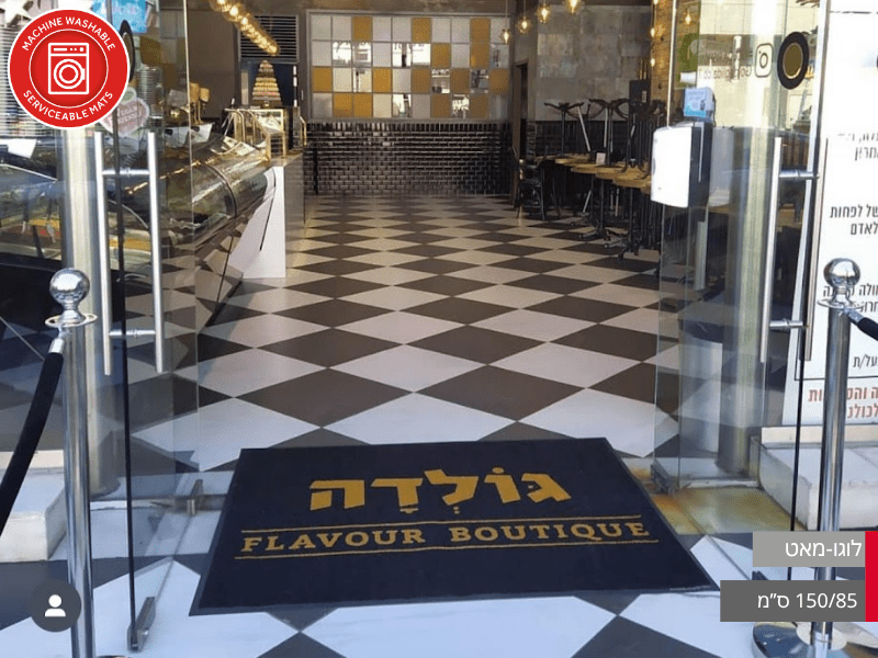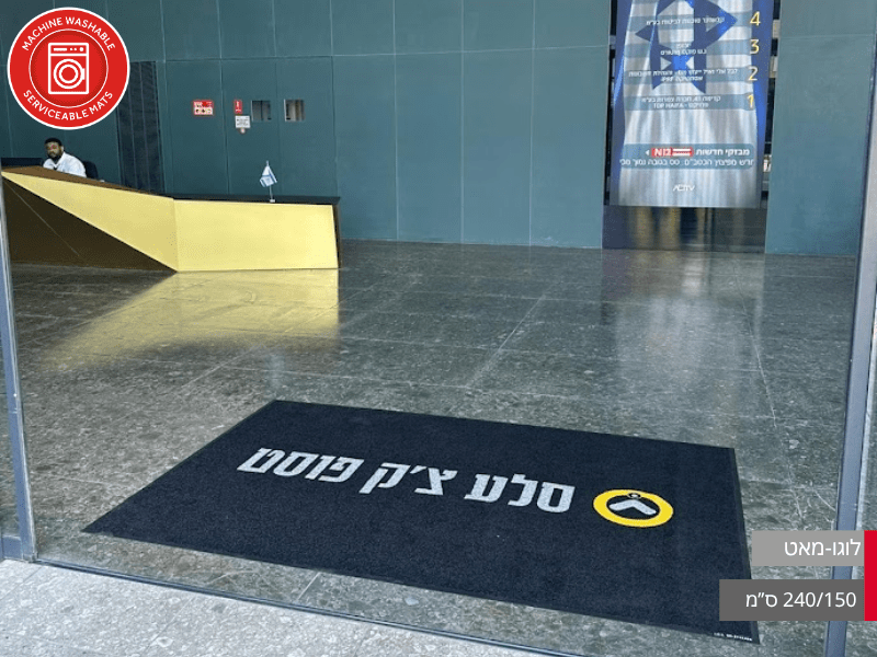 שטיח לוגו פרו מקצועי במגוון גדלים לבחירתכם, המיועד לעסקים, משרדים, חנויות ומוסדות ציבוריים המעוניינים לשלב מיתוג יוקרתי עם פונקציונליות.