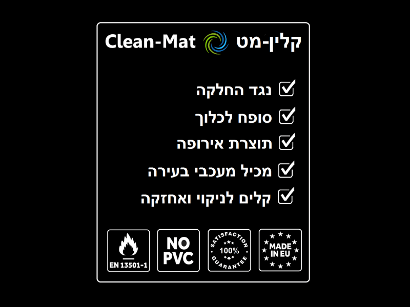 שטיח קלין-מאט במגוון מידות לבחירתכם. הוא פתרון אידיאלי לשמירה על ניקיון בכניסות לבתים, משרדים ועסקים.