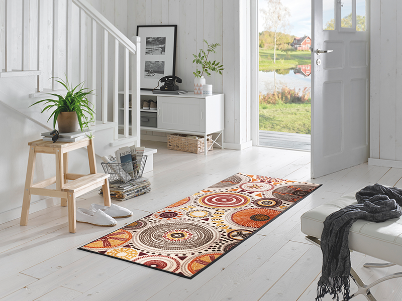 שטיח כניסה בעיצוב בוהמייני טבעי שמשלב דוגמאות אתניות, צבעים חמימים ותחושת חופש והרמוניה. מוסיף לכל חלל טאץ’ עיצובי נינוח ומלא סטייל.